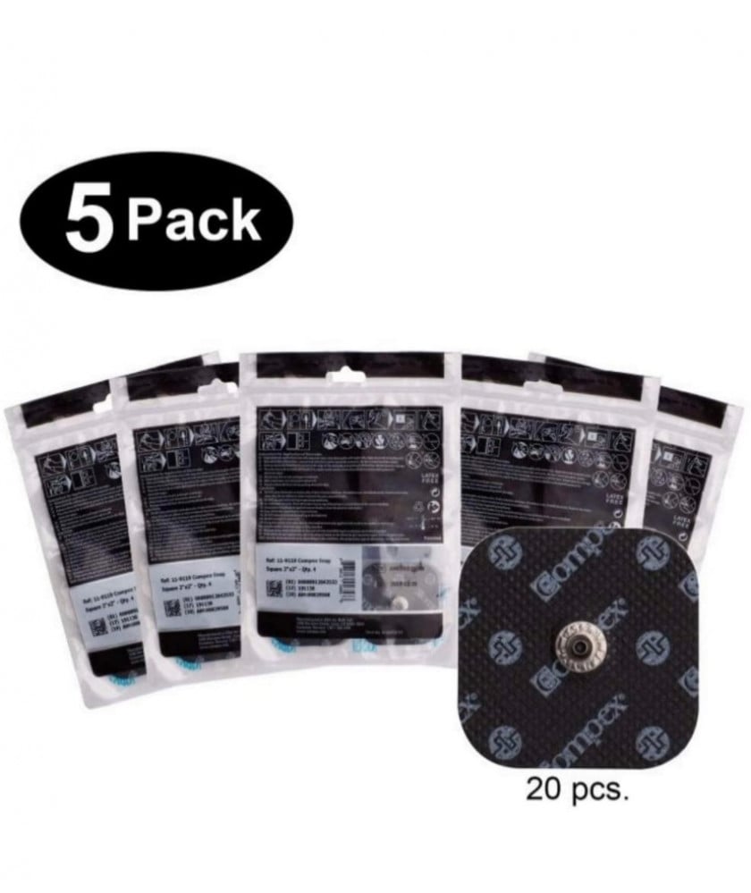 تُستخدم أقطاب كومبكس سهلة الإطباق أثناء تحفيز العضلات، وهي متوافقة مع جميع أجهزة الكابل الإضافية من كومبيكس. الأقطاب الكهربائية هي النقاط التي تنتقل فيها النبضات إلى أعصابك المحرك، وفي النهاية ألياف عضلاتك. فهي تلعب دورًا كبيرًا في جلسة تحفيز عضلات كومبكس، مما يسمح لك بعمل عضلاتك بأعلى فعالية. كل قطب كهربائي سهل الإطباق من كومبيكس مغطى بمادة لاصقة طبية قوية، تم تطويره ليصقه على بشرتك. عند استخدامه في الظروف الطبيعية، يجب أن يدوم كل قطب من 15 إلى 20 جلسة.